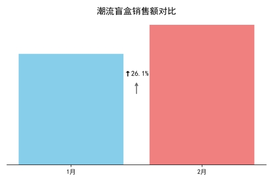 图注:此图对比了潮流盲盒品类在2025年1月和2月(电影上映当月)的销售额。